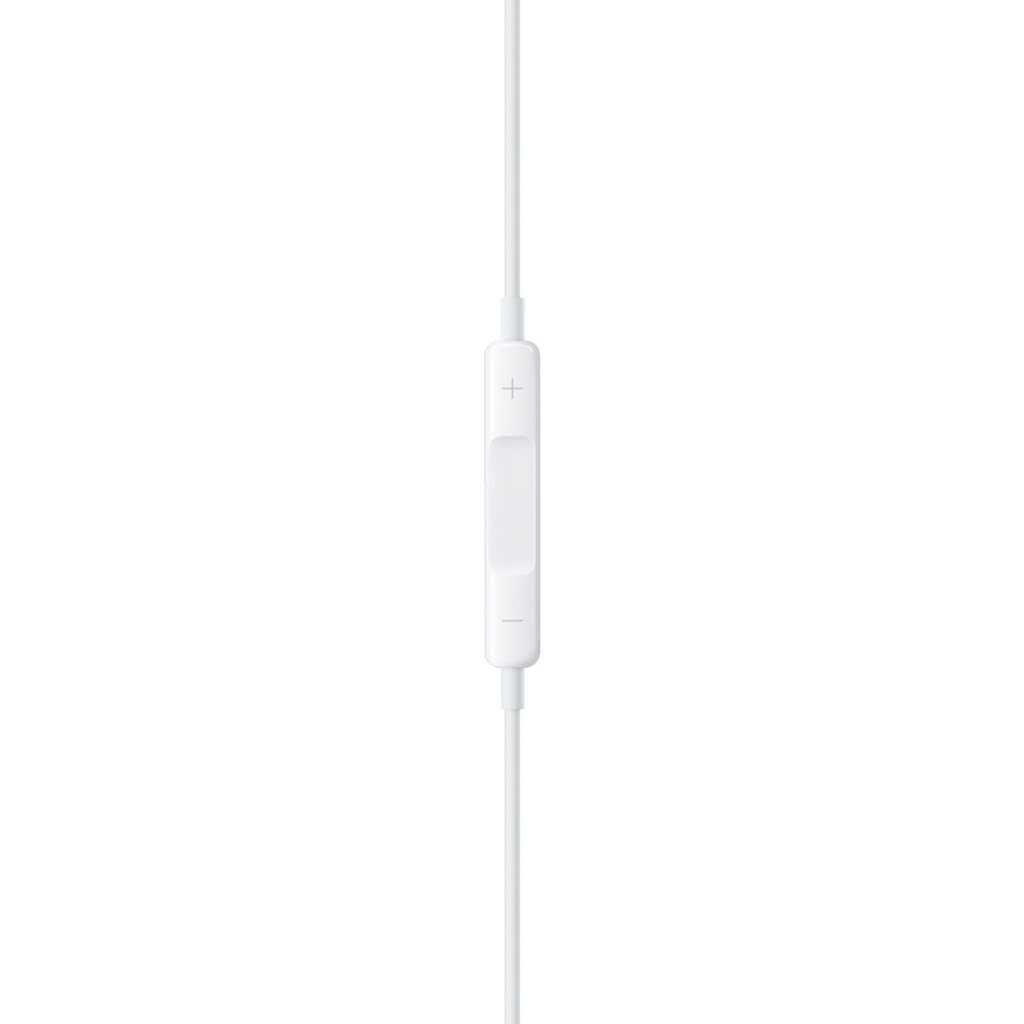 Os EarPods (conector Lightning) também têm controle remoto integrado, que permite ajustar o volume, controlar a reprodução de músicas e vídeos, e atender e encerrar chamadas apertando o controle.